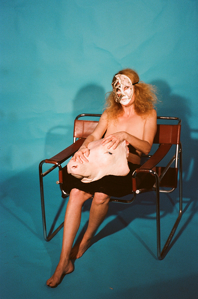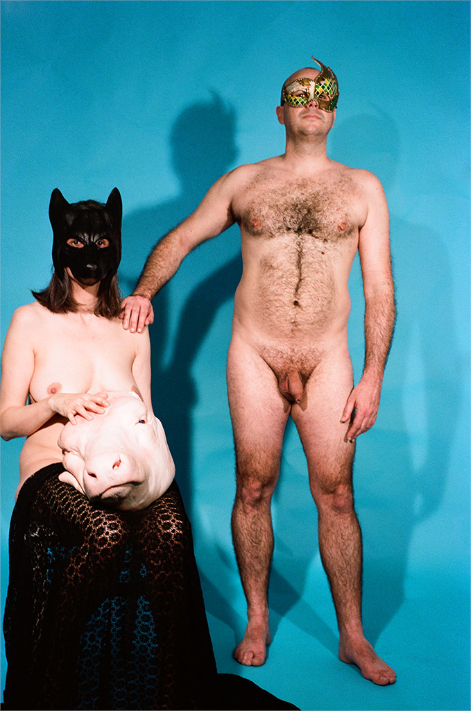 Animalité contre animal humain. En chiasme, la bête morte devient humaine quand l’humain pose son autorité dominante. La tête tranchée confronte la couleur claire de la mort expressive à la pâleur d’une douce nudité.